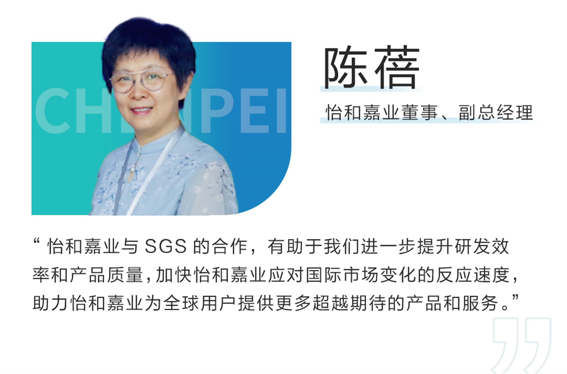活动伊始,怡和嘉业董事、副总经理陈蓓率先上台致辞。她指出,怡和嘉业测评中心获得“CTF实验室”及“QTL实验室”资质认定,是怡和嘉业发展历程中一个重要的里程碑。