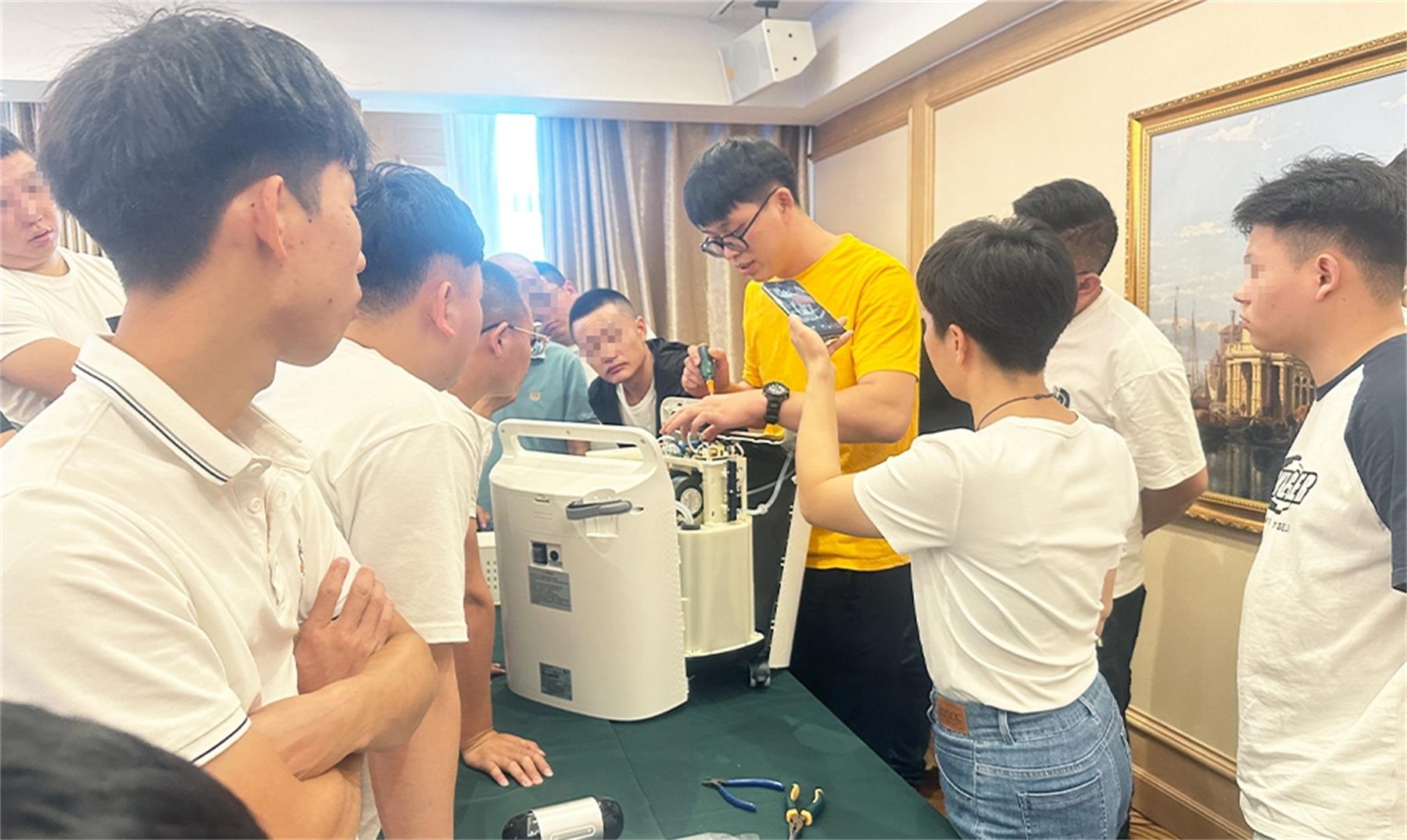 来自总部的临床应用经理带来了睡眠生理知识培训,产品经理进行了产品应用指导培训,内容专业、全面;一线服务人员结合终端实际问题,与讲师进行了高效交流及互动;现场还组织了呼吸机、制氧机、高流量产品的维保实操,通过实际操作,查漏补缺、夯实技能。