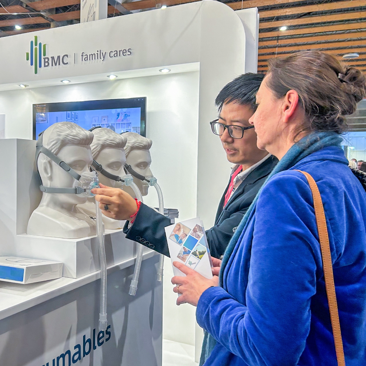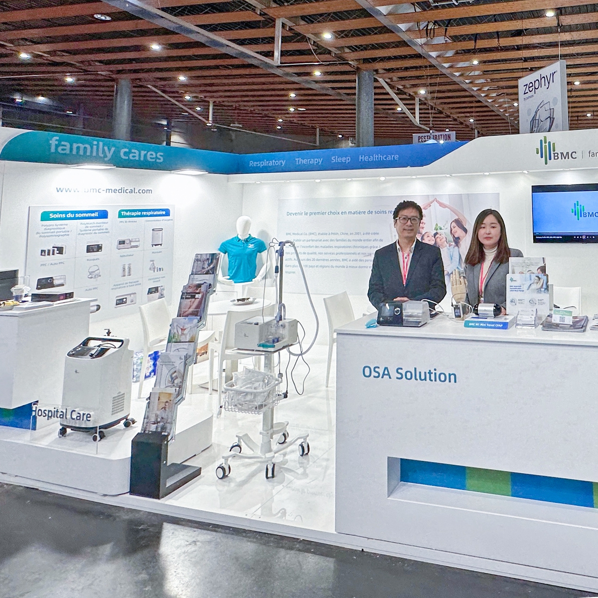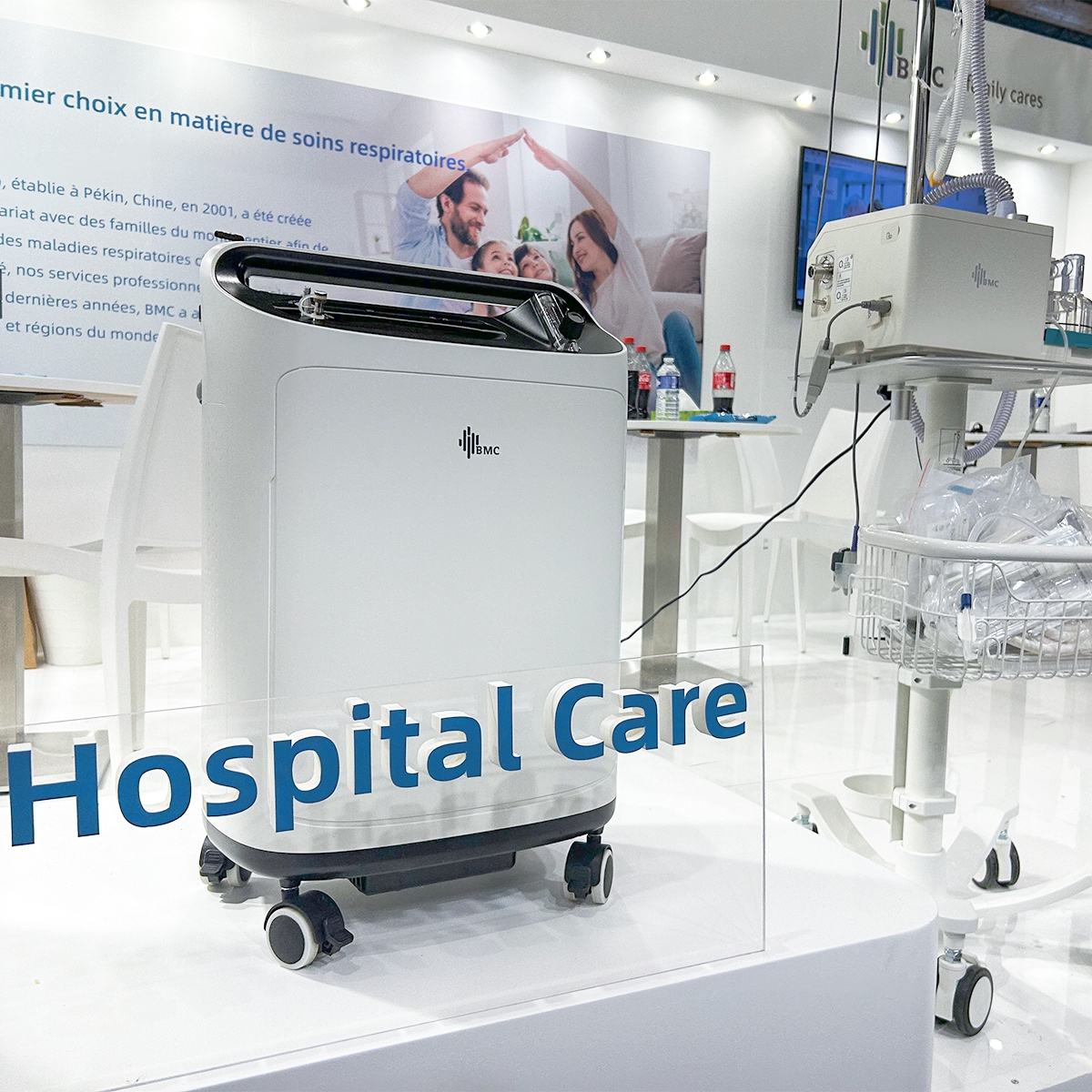 在展台上,以SO1系列医用分子筛制氧机和RM10系列医用供氧器为首的多款氧疗设备,不仅关注到慢性阻塞性肺疾病(COPD)患者的舒适度和便利性需求,还为治疗场景提供了多样化选择,实现了院外的健康管护。